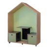 Tegnehus med plads til 2 børn, med skuffer til opbevaring under sædet. Står på hjul så det nemt kan flyttes rundt. Perfekt til fokus og hygge til alle typer børn. Kan leveres med lys.